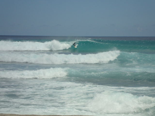 Le Moule is a reef break. You'll find waves with enough shape to practice turns and get longer rides. Not too mellow, not too heavy.