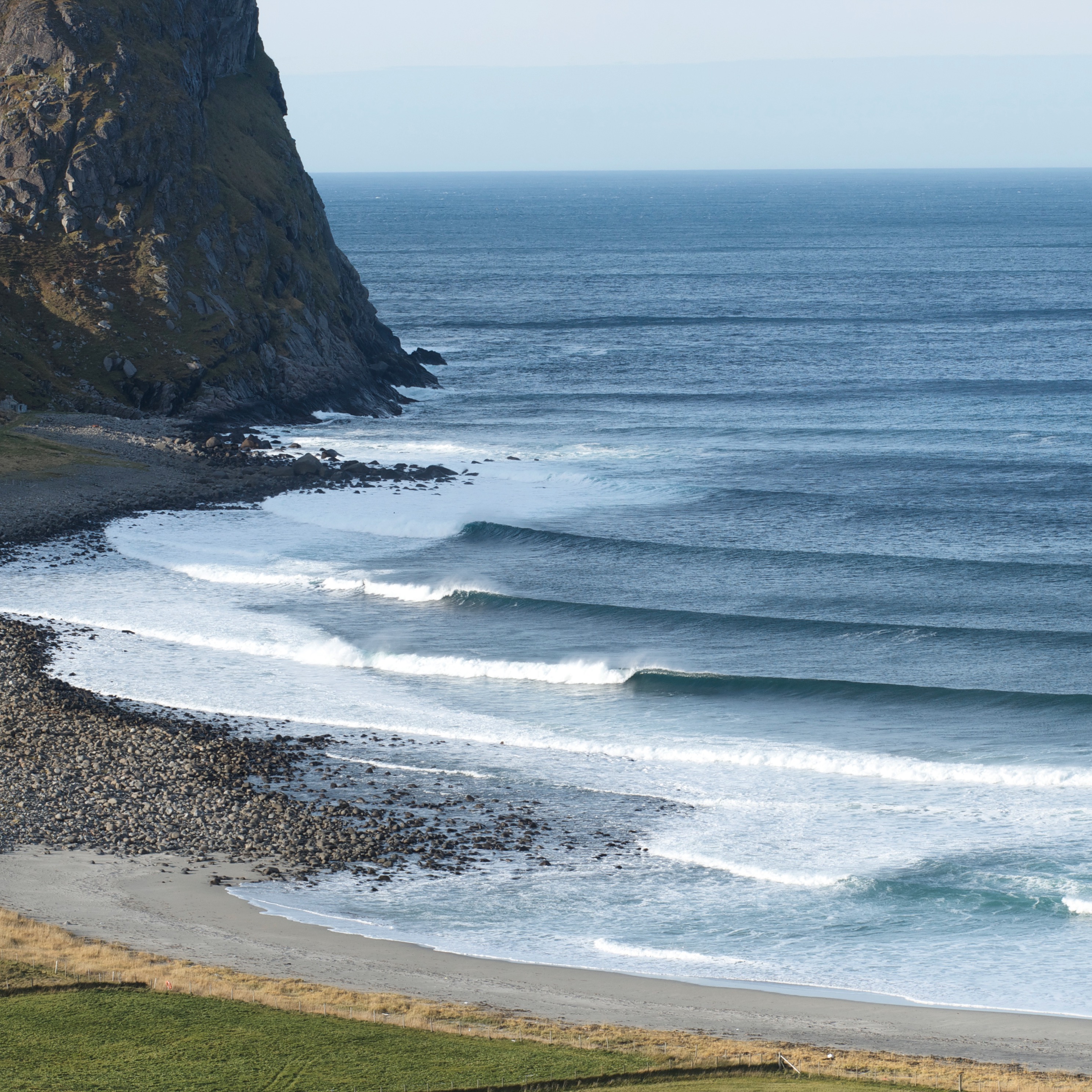 Unstad Beach is a beach break. You'll find waves with enough shape to practice turns and get longer rides. Not too mellow, not too heavy.